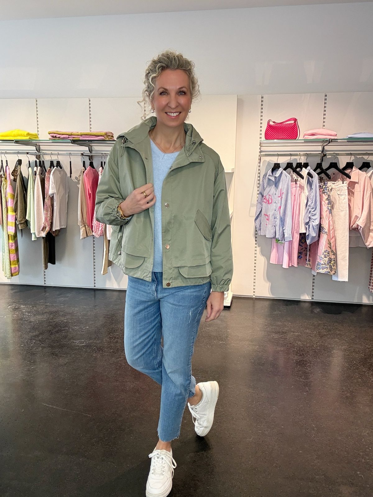 Trenchjacken sind diese Saison ein großes Trendthema. Sie lösen den klassischen Trenchcoat ab und überzeugen mit kurzen, knackigen Silhouetten für den perfekten Übergangslook. Die kurzen Styles zeigen sich in vielen Varianten, von doppelreihig bis modern interpretiert, und punkten mit entspannten Materialien.