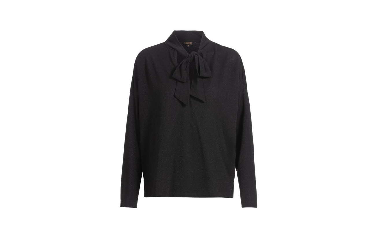 Jerseybluse mit Schluppe in schwarz mit Glitzereffekt