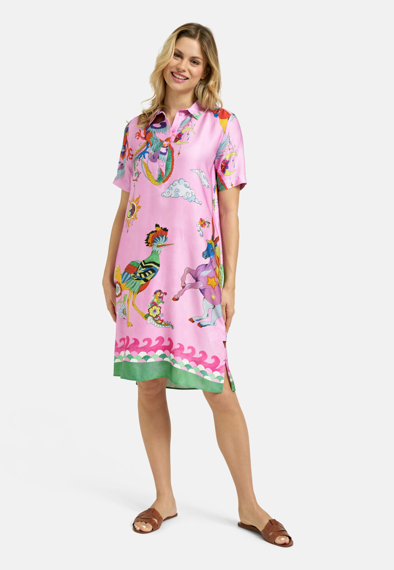 Halbarm Kleid mit geradem Schnitt und Kragen mit aussergewöhnlichem Druck