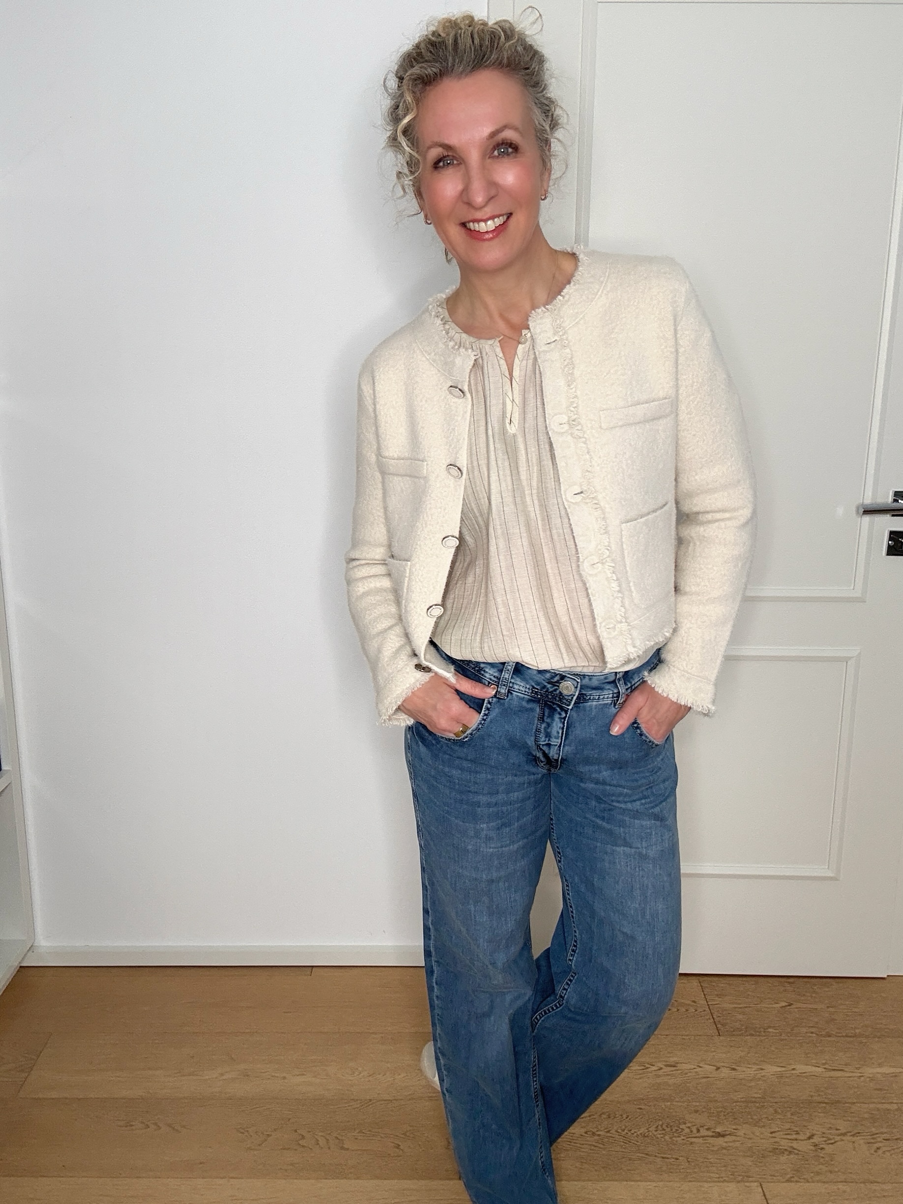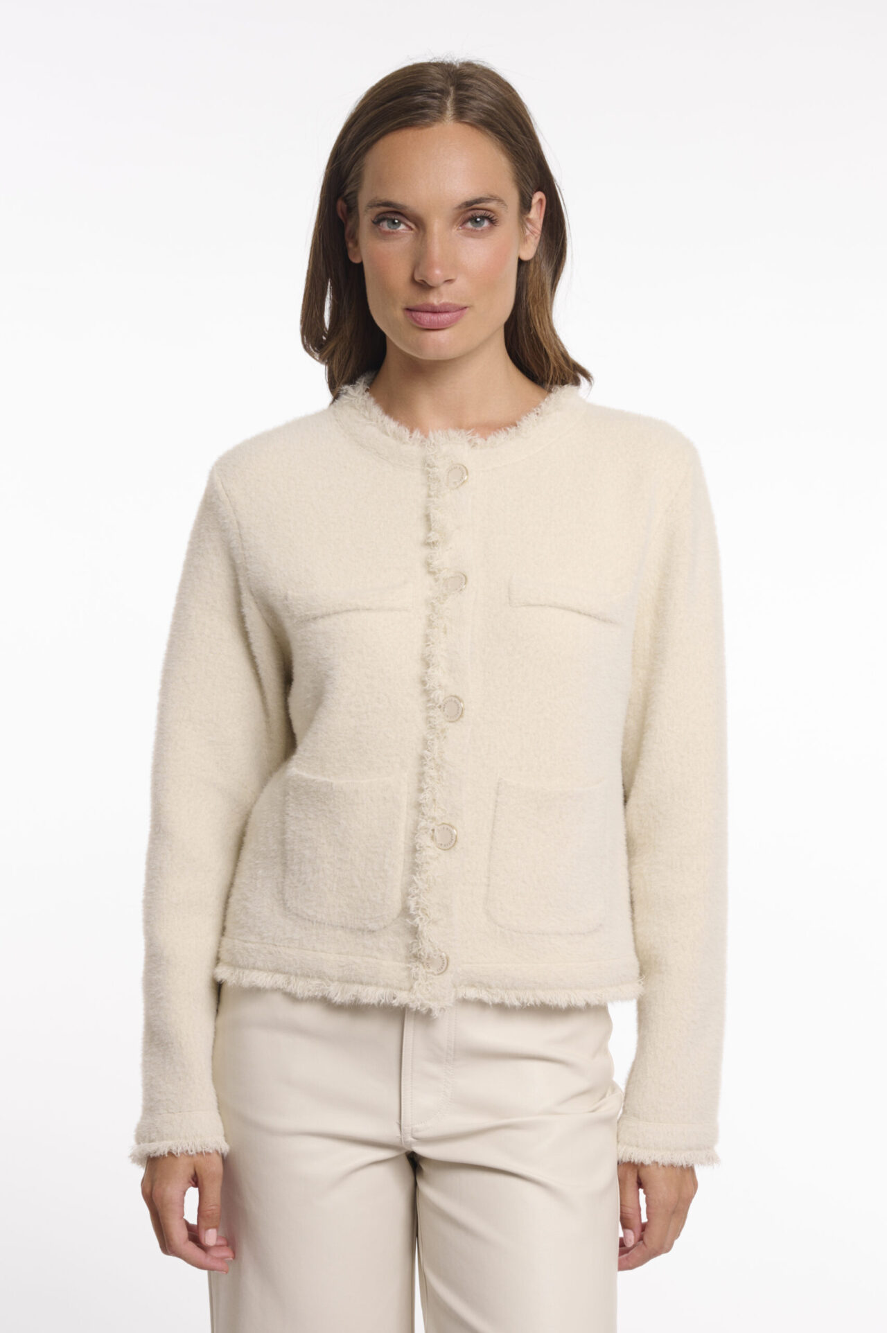 Super edle Jacke mit Fransen und Schmuckknöpfen mit Kuschel-Effekt