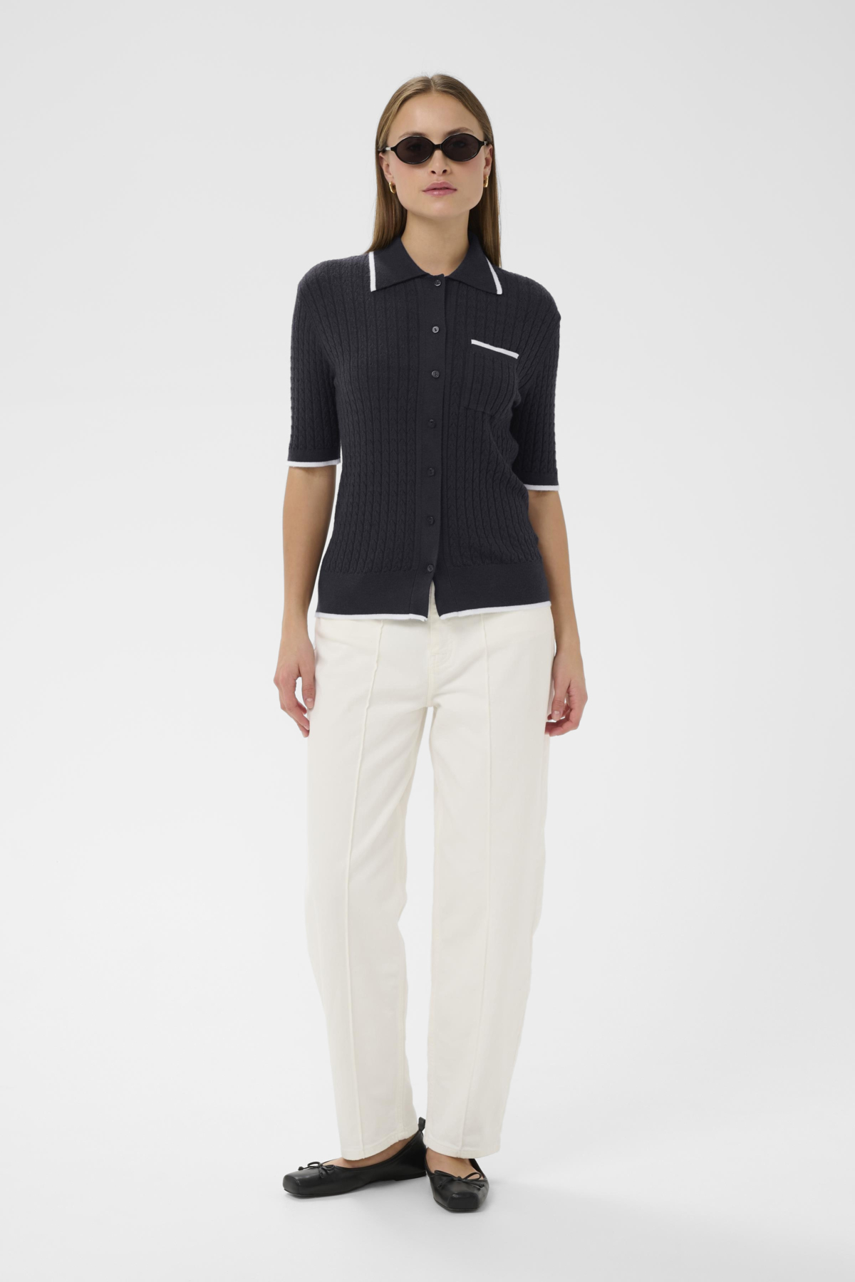 Durchgeknöpftes Poloshirt in blau und weiß