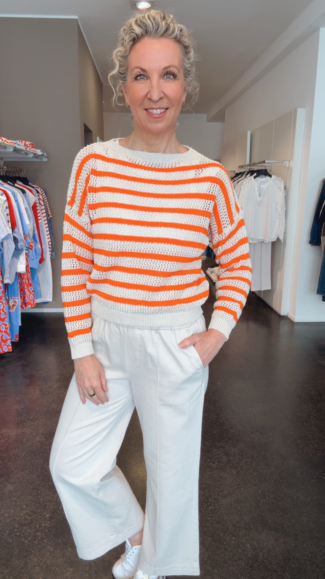 Streifen Pullover in sand-mandarine