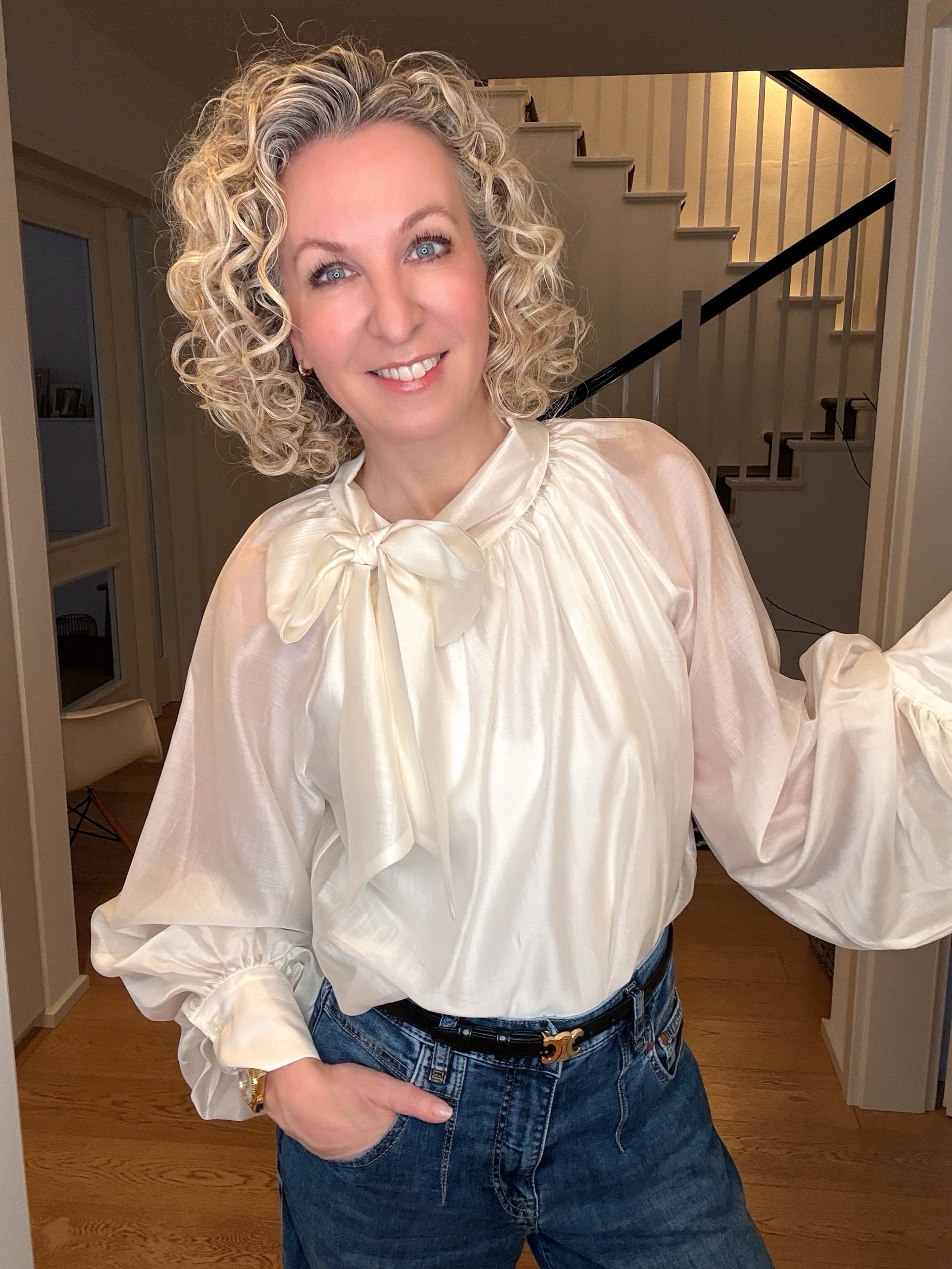 Transparente Bluse mit weitem Arm und Schluppe