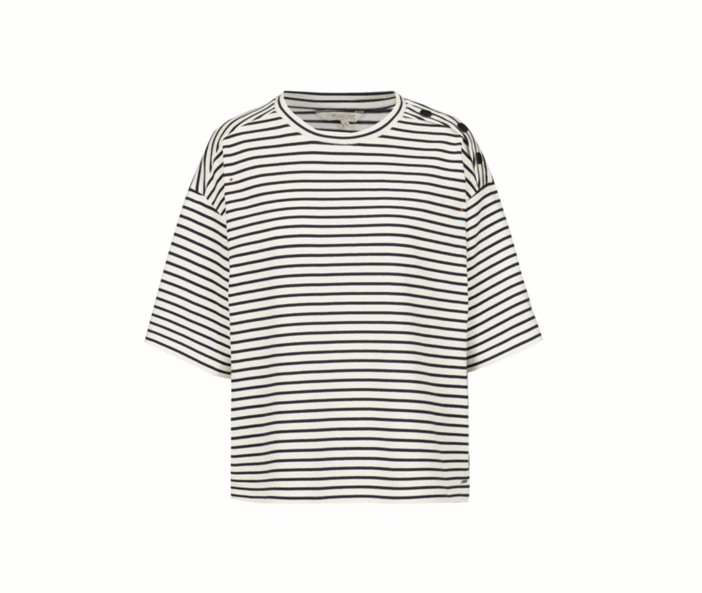 schönes Ringelshirt Dunkelblau/weiß mit Knöpfen auf einer Schulter