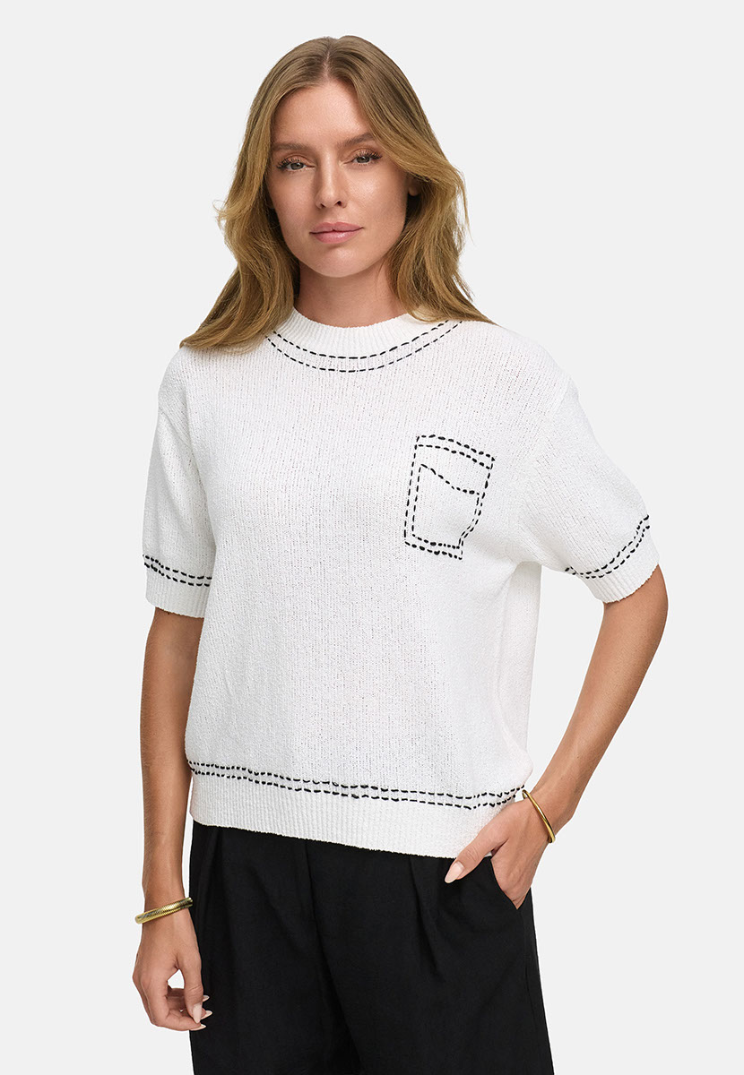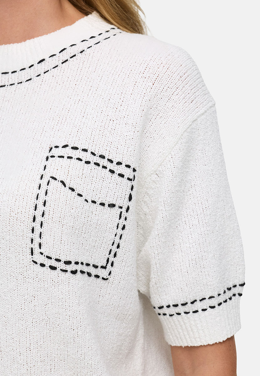 Strickshirt in weiß mit aufgestickter Brusttasche