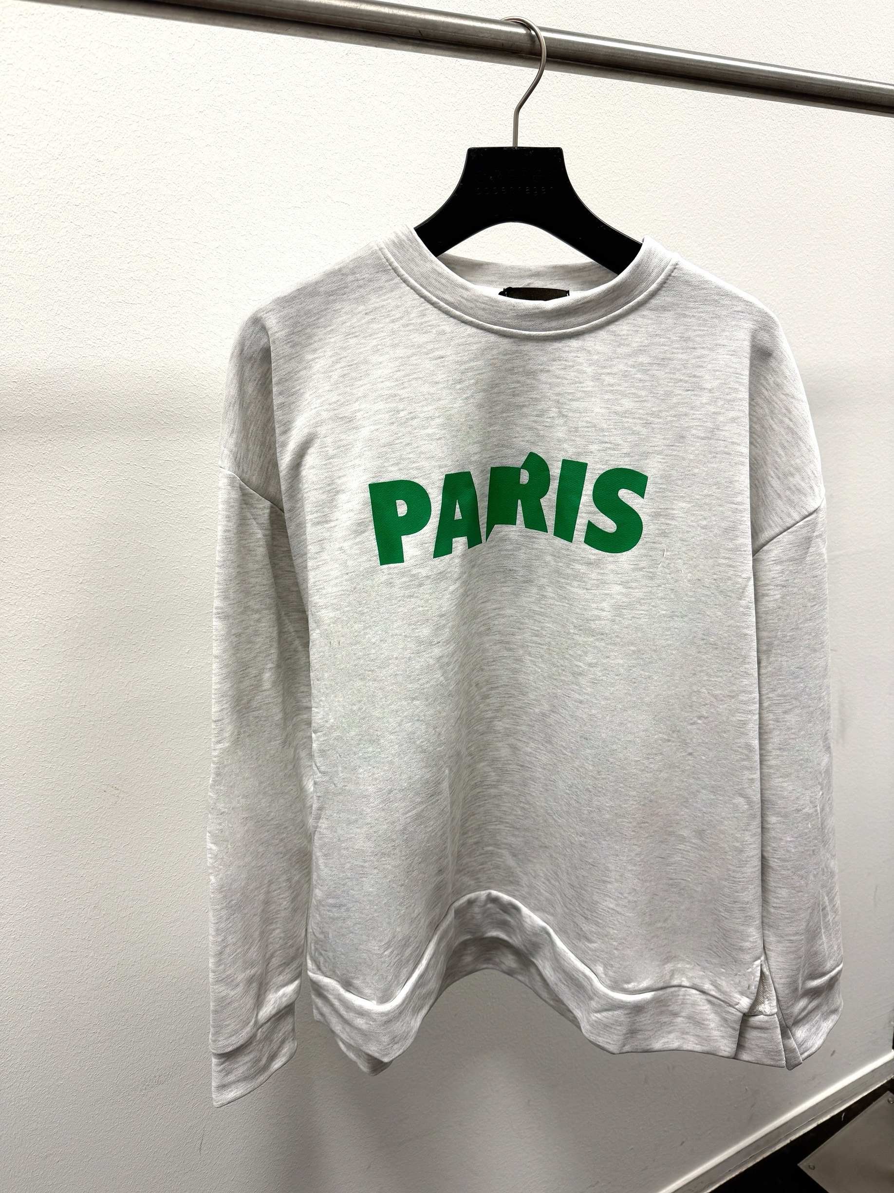 Lässiges Sweatshirt in grau mit grünem Paris-Schriftzug